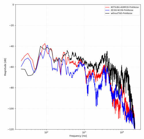 先ほどよりは違いが見えますね。中低域から高域まで、所々COTSUBU ASMR 3Dより遮音されているのがわかります。