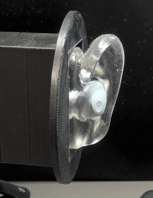 装着時の飛び出具合。この耳模型はかなり小さめだがそれでも収まっている。