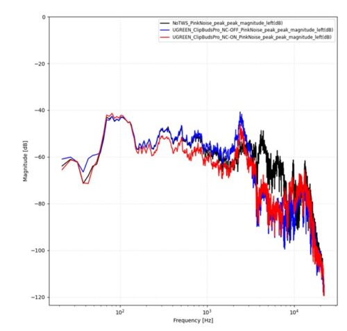 以下Sweep音とPinkNoiseで、イヤホンなし、イヤホン有でANC-OFF、イヤホン有でANC-ONの比較です。