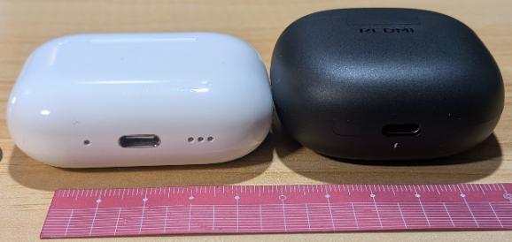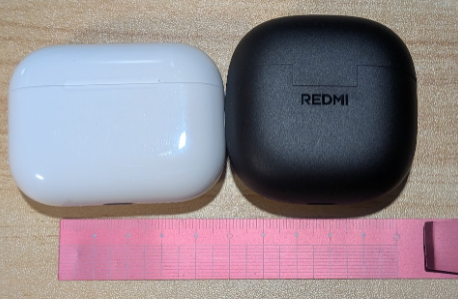 ケースサイズ比較 正面視 左(AirPodsPro3) 右(REDMI Buds 8 Lite)